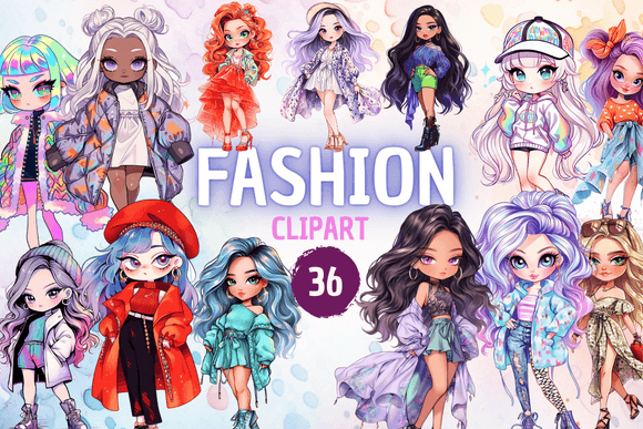 ✅ 36 cliparts with chibi cute fashion Girls.